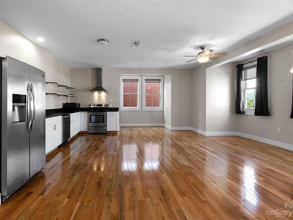 LOCATION! Experience true Brevard living in this spacious one-bedroom condo built in 2015 located in the historic Aethelwold hotel. This studio boasts leathered granite countertops, stainless steel appliances, hardwood and tile flooring, extra wide hallways, a walk-in closet in the primary bedroom, a tiled walk-in shower, and incredible views! Wake up to views of Pisgah National Forest, and enjoy your private view of the Assault on the Carolinas bike race, the Christmas parade, and all the happenings of S. Broad Street. Short term rentals are allowed.