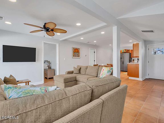 Discover lagoon life and all that it has to offer in this updated Mystic Island waterfront ranch with garage and fenced yard! This property offers three bedrooms, along with a bonus room, that is currently being used as a fourth bedroom, and two full baths. Freshly painted, neutral interior, new kitchen quartz countertop, all new bathroom, new windows, new roof, new exterior gutters, new exterior doors, and more! GE stainless steel appliance package includes refrigerator, gas range, microwave and dishwasher. Stackable washer/dryer included. This gem is immaculate and move in ready! A true fisherman's paradise with quick access to the bay along with a wide lagoon, deep lagoon, floating dock and 50 foot of vinyl bulkhead.