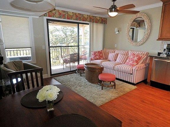 This villa offers a separate bedroom with a king size bed, full size kitchen, living and dining area are combined. You'll find the convenience of wireless internet, free long distance (US, not international calling) and digital cable which offers 300 channels. Additional bedding for this villa includes a queen size sofa sleeper in the living room. There is a balcony located off the living room which offers a nice oceanside view. You?ll find Seaside Villa is located on the south end of the island, along South Forest Beach Drive, a short distance from Coligny Plaza. Seaside is an oceanfront property that is situated about 70 yards from the ocean. The amenities would include an on-site pool and complimentary access to the Player's Club for use of their indoor heated pool as well as their fitness center. Newly remodeled Sea Side unit #345 has hardwood floors and sliding door access to oceanview balcony.
