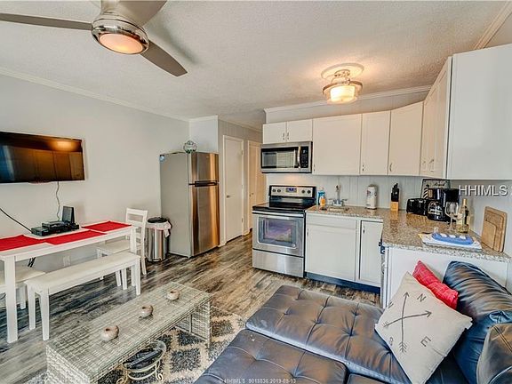 Beautiful Hilton Head Island beachside villa. This little gem has been tastefully updated with a Coastal flair and is being offered fully furnished and in turn-key condition. Updates include; solid surface floors throughout, updated kitchen w/granite countertops & stainless appliances, new cabinets, furnishings, a Queen size bed & hall bunk beds. Sea Side Villas is a gated community with 24-hr security. The complex has an elevator, grilling area, bicycle storage, and private parking. Close to all the shops and restaurants at Coligny Plaza. See 3D VT link.