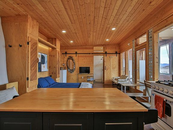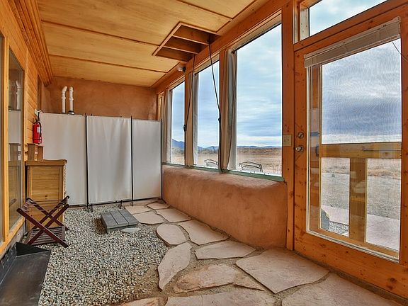 Enjoy complete Off-Grid living in your beautiful 710 sq.ft. Studio Earthship. You have a Combo bedroom/living room with walk-in closet, a full bathroom, and a full kitchen. Close to Taos and the Ski Valley, with big sky nights and open air, clear sky days. Add a rooftop picnic table for dining under the stars and you have your own little piece of heaven. The Greater World Community also has 340 acres of hiking trails and common space for community landowners. Amazing layout, and minimalist configuration that contributes to the overall efficiency and utility of the property. Your landscaping can be passively irrigated with graywater. Plant low water use trees, and when mature you have additional shade and screening from adjacent properties. Cell service and VOIP is good at the property. No hardwired phone lines are available anywhere in the Greater Earth Community. TaosNet is the Internet wireless provider for the area. Of special note is this Earthship was built with a passive RADON gas barrier under the slab. It also has a passive cooling system for those warmer summer days. NOTE: Square footage is based on builder and owner assertions and should be regarded as estimates. Broker and Brokerage take no responsibility with regard to the size, or condition of the property. Buyers should make their own measurements, and conduct their own inspection(s) to assure accuracy and condition. THIS IS A STUDIO EARTHSHIP. The Bedroom is not separate from the living room.