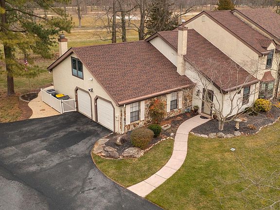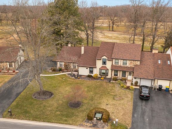 Welcome to your dream home! This meticulously crafted Tudor-style end townhome offers luxurious living with a touch of elegance. Nestled in a serene setting with a picturesque view of the 7th fairway of Maple Dale Golf and Country Club, this residence promises both tranquility and convenience. Step inside and discover a modern oasis where every detail has been thoughtfully considered. The primary bedroom, conveniently located on the first floor, provides a retreat-like sanctuary for relaxation and privacy. No expense has been spared in the updates throughout this home. The kitchen boasts top-of-the-line Bosch appliances, including a dishwasher, refrigerator, and double convection oven, ensuring that culinary delights are always within reach. Sleek Corian countertops, complemented by Wolfe cabinets, create a stylish and functional space perfect for both everyday meals and entertaining guests. Natural light floods the living spaces, thanks to Pella windows with integrated blinds, offering a seamless blend of indoor-outdoor living. Step outside onto the stamped concrete patio and savor al fresco dining or simply unwind while taking in the breathtaking views of the surrounding greenery. For the hobbyist or DIY enthusiast, the garage presents a unique opportunity with one side vented for heat and air, ideal for use as a workshop or additional living space. Don't miss your chance to experience luxury living at its finest in this exquisite Tudor-style townhome. Schedule your showing today and prepare to make lasting memories in this one-of-a-kind residence.