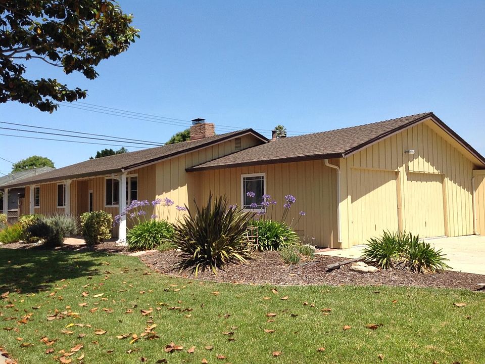 Monterey Park 3 BR 2 Bath on a corner lot near SVMH - updated kitchen with corian counters, tile backsplash, oak cabinets & glass panels, built-in oven, glass cooktop, convection microwave, dishwasher & disposal; remodeled hall bath with tub/shower & dual sink vanity; LVRM fireplace w/Lopi insert; MBR w/walk-in closet & French doors to patio, Interior features: Dual pane windows, French & sliding glass doors, oak floors, recessed lighting, ceiling fans, crown molding, vertical blinds, security system (leased), wired for CAT 5 network, LVRM surround sound, tile entry w/granite cover, BR closet organizers, additional insulation Double garage with high clearance plus large shop, epoxy floor coating & lots of built-in storage. Exterior features: Extra off street parking plus double gated access to 62 ft RV/boat concrete storage pad, additional patio/BBQ area, lawn & auxiliary storage shed, auto sprinklers, artificial turf medians, Gazebo, gas grill, furniture & valances do not convey.