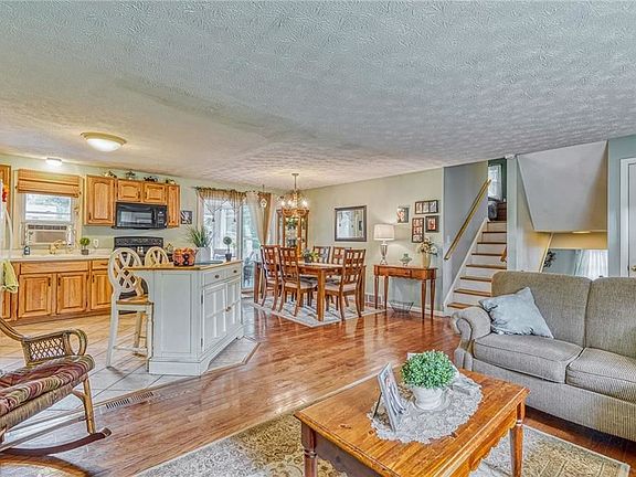 Welcome to 23 Sandstone Dr, This split level is Home Sweet Home, Upon entering you are greeted by gleaming hardwood floors and an entirely open first floor, the garage has been converted to additional living space, ideal for home office or an additional family room. Off the dining area is a beautiful 3 season room connected by 2 decks and a scenic back yard with fire pit and gardens. Plenty of room back here and great for back yard bbq! The lower level family room is very welcoming as well and has a ½ bath, laundry room and an additional bedroom or office space. The second floor features 3 bedrooms and a full bath. Vinyl siding, vinyl replacement windows, 5 yr old tear off roof and a new water tank make this a terrific value. Seller will be painting the deck floor.