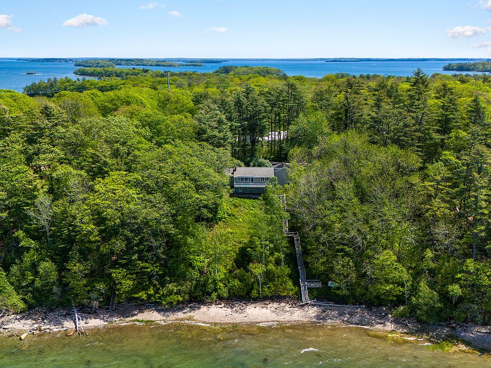 Imagine waking up to the gentle sounds of the waves lapping against the shore and the sun casting a golden hue across the 150 feet of pristine deep-water frontage stretching before you. Nestled on an elevated and protected lot on the serene leeward side of Cousin's Island, this home is a nature lover's paradise with a rare due-west exposure that bathes the lot in sunlight to enjoy swimming, kayaking, boating, and incredible birdwatching from your own backyard. As the day fades, marvel at glorious sunsets and evening star gazing from an expansive waterfront deck ideal for peaceful evenings or lively gatherings with family and friends. Step inside this charming three-bedroom, two-bath ranch, where 2,480 square feet of living space welcomes you. An open-concept interior draws you in, with breathtaking water views from almost every room. Picture yourself in the spacious living room, where the warmth of the wood-burning fireplace beckons you to unwind. The cozy kitchen and dining area are perfect for preparing and sharing meals, while the sunroom, with its vaulted ceilings, offers a versatile space to work from home or relax. The convenience of a first-floor bedroom ensures long-term comfort, while the daylight, walk-out lower level provides two additional bedrooms, offering a private space for guests. The two-car garage features a lower-level walk-out, providing ample storage and easy accessibility. Despite the tranquility of this island home, it is causeway-connected to the mainland, just 10 minutes from Yarmouth Village and 25 minutes from the vibrant city of Portland and the Jetport. This treasured island property is more than just a home; it's a gateway to a lifetime of memories. Whether you're seeking an investment or a forever home, don't miss this incredible opportunity to renovate this home and make it your own.