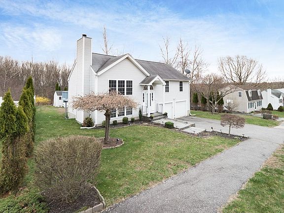Beautiful split entry home with cathedral ceilings and hardwood floors. Open floor plan kitchen/living room with breakfast island and lots of natural light. Updates include stainless steel appliances (2016), hardwoods floors in the bedrooms, and freshly painted livingroom and kitchen. Finished lower level with family room, wood burning fireplace, and full bathroom. Manicured lawn with landscaping, front walkway, and back deck off the kitchen for entertaining. Property backs up to protected conservation land for privacy. Enjoy plenty of storage space with drop down staircase to the attic, 2 car garage and shed. Easy access to Rt 146, I-290, Mass Pike and Rt 20 for commuters. Please submit offers by 5pm Monday 4/29.