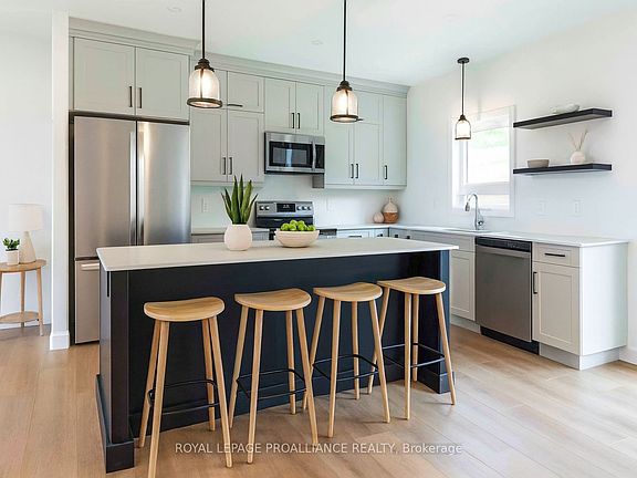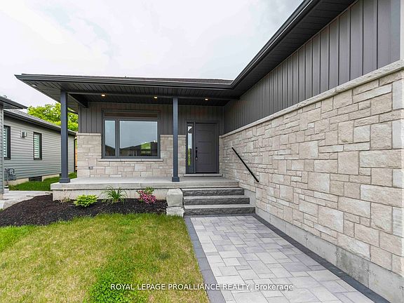 Better value than new AND it is new! This stunning & bright two bed two bath home sits on an extra deep and private lot with no neighbours behind. This gorgeous home offers - beautiful kitchen cabinets to the ceiling with crown moulding plus an island, 9 ft ceilings throughout main floor plus coffered ceiling in the living room, ensuite with gorgeous glass/tile shower and double vanity, main floor laundry, beautiful low maintenance flooring, huge rear deck, front porch, stone front walkway, paved driveway, sodded yard, double garage, 7 yr Tarion Warranty, plus lots lots more. Located in the very popular Orchard Lane subdivision with only single family detached homes with its own park. 10 minutes or less to CFB Trenton, Marina, Walmart, Golf Course, 401 & the Trent Severn Waterway. Ready for immediate possession! See it today - you will not be disappointed!