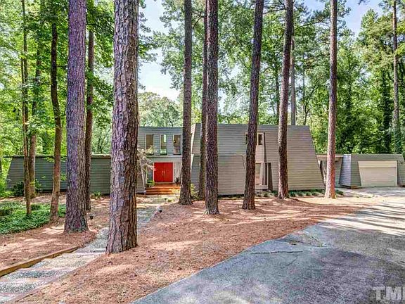 RARE & UNIQUE MODERNIST HOME designed by architect JON CONDORET featuring floor-to-ceiling windows, natural cut rock floor, wood-burning fireplace &Chefâs kitchen w/ custom cabinetry, new laundry & mudroom, gas stove, pot filler, stainless steel appliances, and new deck. First floor master w/ views of forest &pool. Lower level has a funky bonus room w/ a bar, additional studio room, bath, and walk-out to a gorgeous private pool area. Property adjacent to Duke Forest/Beuhler Trail. SEE VIRTUAL TOUR