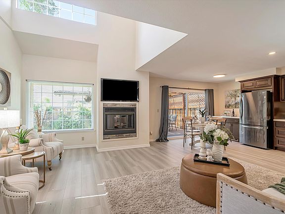 Spacious Executive style end unit Townhouse with Attached 2 car garage. Beautiful Open Floor plan with vaulted ceilings. Two spacious master suites with closet space. Installed New double pane windows & patio door in Oct 2023. Inside laundry with washer & Dryer. Remodeled kitchen. New Fridge bought in Jan 2021. Private backyard with newer Patio. New deck installed in Dec 2021. Gorgeous flooring- Luxury Vinyl installed in July 2023. Skylights. HOA installed new roof in June 2023. Great location with shorter distance to BART, 680 & 880
