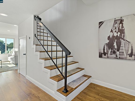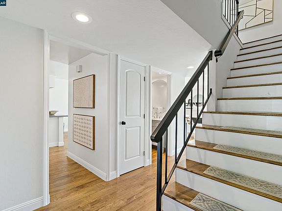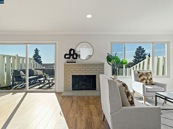 Absolutely beautiful and inviting Sequoia Heights townhouse with gorgeous views of San Francisco Bay! Updated kitchen with quartz counters, glass backsplash, stylish laminate flooring, and updated bathrooms. Freshly painted interior throughout, and new laminate flooring on the stairs and upstairs level. Very livable floor plan with eat in kitchen and generous separate dining area that flows into the spacious living room with cozy fireplace, perfect for those chilly evenings. Dual pane windows throughout and central air conditioning. Located in sought after and well maintained neighborhood in close proximity to the Regional Park and Chabot Equestrian Center. Numerous hiking opportunities abound! Quick freeway access for easy commuting. Be sure to see this one!
