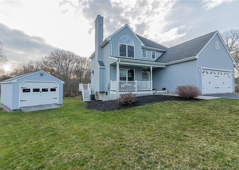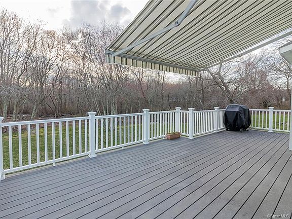 You'll know youre home when you enter this lovely and well cared for home. Terrific neighborhood with its own playground adjacent to backyard. End lot on cul-de-sac provides a large backyard with a bubbling brook flowing behind it. You'll see ducks floating by and deer visiting in season! Walk to Downtown Mystic from this contemporary colonial with an open floor plan. Fireplace in living room to warm those chilly winter evenings as you relax with a good book. Bright sunny eat-in kitchen. Sliders to large back trex deck with retractable electric awning. Can't you envision those summer barbeques? Upstairs youll find a large master suite with private bath and walk-in closet area. A full bathroom and two additional bedrooms with generous closets round out the second floor. Finished and carpeted walk out basement with small office or toy storage area. Family room or Man Cave? Two car attached garage with a third garage/shed for big toys and lawn games and accessories. Terrific spot to enjoy your next phase of life, enjoying the pleasures of Mystic and the fabulous CT shoreline