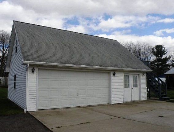 This is a great home that has been lovingly cared for and updated. There's a large eat in kitchen, spacious living room and three bedrooms with one on the main level. the porch has been enclosed for three season use. The oversize garage would be great for the hobbyist. The second floor loft would be a great workshop or storage area. The yard is spacious and begs for a family to enjoy. Maintenance free siding and newer double pane windows.