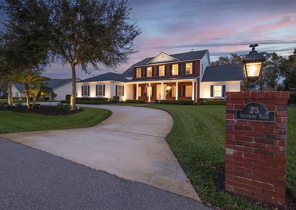 Welcome to 23 Skidmore Rd! This home has it ALL and MORE! Situated in the beautiful gated community of Skidmore, you will find this meticulously maintained property with magazine worthy landscaping and curb appeal! Boasting 4 bedrooms, 3 full bathrooms, and 2 half baths, this stunning home sits on .56 of an acre and has an abundance of interior space and storage! Downstairs you will find 2 gorgeous gas fireplaces, (one in the living room and one in the family room), a dining room, and fully updated kitchen! The primary suite is located on the first floor and is nice and spacious and includes access to the back lanai. The primary bathroom has double vanities, garden tub, shower, and oversized walk-in closet with closet system. Upstairs are 3 bedrooms, 2 full bathrooms, and a small den that can be used for a kid's flex space or even additional storage! The backyard makes for a dreamy spot to host friends and family! The back lanai offers newly placed tongue and groove pine and fans on the ceiling, resurfaced pool with new tile and brick. The landscaping and lighting are a sight to see! From the pool enclosure, there's a pathway connecting to the detached garage. This area is great as-is for a fire-pit and seating or a space to grill. The 22x32 detached garage was built in 2015 and has automatic roll up doors in the front and rear with garage openers. Ideal addition for storing outdoor toys and/or mancave! The updates are endless! Just to name a few...home has a central vac system as well as full home alarm system with 10 cameras, new kitchen appliances, exterior uplighting, pool pump, septic tank, well for irrigation with 6 zones and automatic timer. The wood floors have been resanded/restained and all new carpet placed downstairs in '22 and upstairs in '16. Both AC units were replaced in '17 and AC Purifier placed in '21. Schedule your private tour today and make this dream home become your reality! It has been loved and cared for in EVERY aspect and is ready for its new owners!! Please see attachment with a detailed list of upgrades/dates and more!