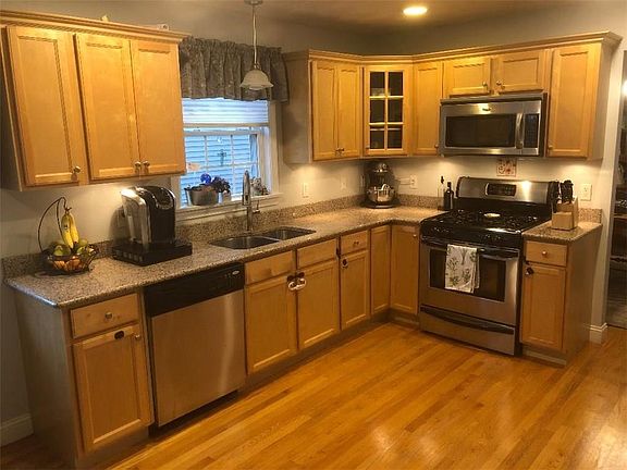 A hidden gem off WARWICK Av in a SECURE CUL DE SAC. A Friendly Neighborhood with in walking distance of a highly rated elementary school. This 3 Bedroom, 2 Bath, COLONIAL features granite countertops in the kitchen and bathrooms, first floor hardwoods, and HARVEY windows throughout. The exterior offers maintenance-free vinyl siding and shutters. Inside this beautiful home you will find a fully finished lower level that provides additional space for entertaining, including built-in media cabinets, beverage refrigerator and utility sink. Additional space can be used as a playroom or home office. The laundry is locate behind two louver doors to close when not in use. Other features include NEST thermostats and lights in all closets. Eat-in kitchen features stainless appliances with a 3 year old refrigerator w/French doors and bottom freezer. UPGRADES:Pegboard and Rhino shelving added to the garage in October of 2019. New garage door with decorative windows added in 2018. Professional painting of the interior was completed in 2020 and features neutral paint colors from the living room through the hall, upstairs, and the up stairs hallway. Dining Room and first floor Bathroom painted within the past year. Extended-height faucet in Kitchen. and new faucet fixtures in upstairs bathroom.12x10 Deck provides entertainment space in the Spring, Summer, Fall. ADD a MOTORIZED awning with remote provides extra shade. This home is walking distance to all shopping transportation. A must see.