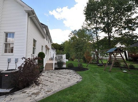 Beautiful spacious 11 yr new move in condition center hall colonial, new paver walkways from rear to front of house & drvy to front steps,2 story foyer & FR, floor-to-ceil stone fplc,remodeled 2010 new kit w/new granite & S/S appliances,new h/w/f & carpets,4 yr new fin bsmt w/exercise room 19.8 X 11.4 ,game room 11.5 x 13.2 rec rm 35 x 13.6,2 zone heat & c/a/c, new Trek deck 32 x 10, oversized double blacktop driveway with belgium curbing, new exterior front lights, new underground sprinkler system. six paneled doors thru out, oversized garage 20 x 20, updated front Pella door, lever hardware, new awning over deck (stay), located at end of culdesac, First & Second floors 3000 sqft, Finished Basement 800 Sqft