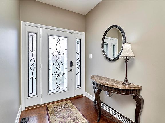 NEW PRICE! Gorgeous,Detached villa w/many upgrades!Vaulted & open floor plan! Grt Rm w/gas fplc joins Dining Area w/4 window bay & Luxurious Kitchen w/huge island,3rd upgrade cabinets w/lights,granite counter tops,backsplash,gas stove,microwave & pantry. Plantation shutters,Custom closets & ceiling fans throughout.Split bdrms. Double drs.to Master Ste w/crown molding,custom bath-his/her vanities.Pocket door offers privacy to 2nd bdrm w/bay & bath.Main flr Laundry w/custom sink,wood cabinets & transom window join Drop Zone area for coats,books & shoes.Wrought iron rail stair case leads to beautiful,walkout Lower Level(deep pour): Lg Family Rm,surround sound,drywalled & carriage door.Exterior Living w/fplc,patio & deck.Custom landscaped,sodded & sprinkler system.Arch.Roof,brick,stone & vinyl exterior. Professionally painted in 2023. Refrigerators,washer & dryer stay. Multiple Internet/Hi Speed Fiber Optic avail.*Enjoy the extensive walk/bike trails, Park & Greenway Lake just steps away.* Location: Detached