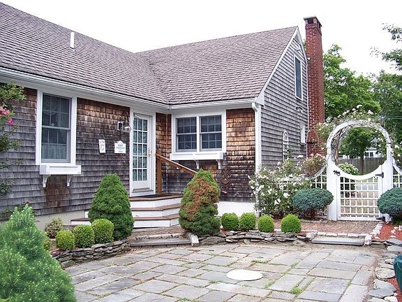 Exceptional, enchanting cape residence with living mostly on 1 level surrounded by beautiful gardens, large mahogany back deck and close-in bluestone patio off kitchen. House was enlarged and updated from top to bottom in 2001 and has been lovingly maintained. Upscale, gourmet kitchen with cherry cabinets and granite counters, formal dining room with wood burning fireplace, large Great Room with gas fireplace and French doors leading to back deck and grounds. First floor master suite with private bath and laundry. Additional 1st floor bedroom or use as handy home office. Two large sleeping rooms on 2nd level. Custom window treatments, oak floors, first floor 2nd bath with shower. Absolutely beautiful grounds. Right in the "Center" of things; walk to restaurants, post office, state beach or hop on the bike path. Ideal home for those craving single floor living with plenty of room for entertaining and extra guests. Finest of finishes and decorating inside and great storage in huge attic.