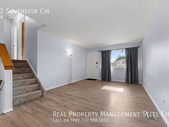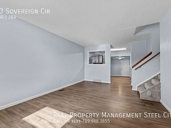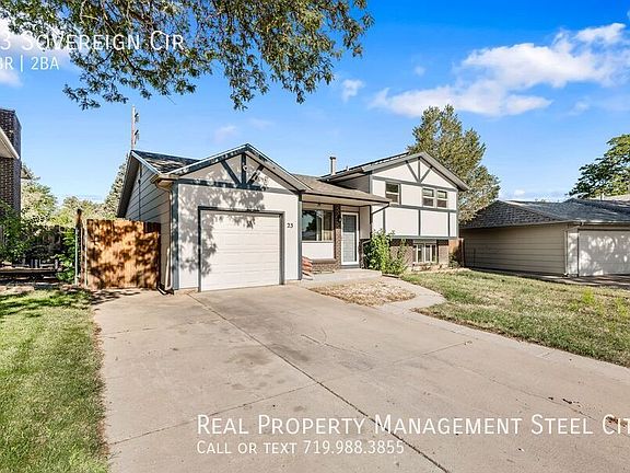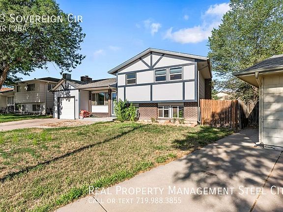 There is a $150 solar panel fee. Welcome to 23 Sovereign Cir, a beautifully maintained tri-level home located in the desirable Regency and Meadows neighborhood of Pueblo. This spacious 5-bedroom, 2-bathroom home offers approximately 2,608 sq. ft. of living space and features a vaulted-ceiling great room with a cozy gas fireplace, an open-concept kitchen with a functional island, and a unique hidden room behind a bookshelf for extra space or fun. The lower-level bathroom includes a relaxing jetted jacuzzi tub, and the fully fenced backyard comes complete with a dog run and storage shed. The home is beautiful, professionally cleaned, and move-in ready. panel fee applies. Built in 1975, the property also includes a 1-car attached garage, walk-in closets, ceiling fans, and more, residential area. Solar Panel $150