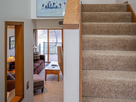 23 Spring Creek is a tastefully decorated 2-bed/2-bath golf villa townhouse in the Eagle Ridge Resort and Spa rental program. The townhouse is close to the South Pro shop and offers unobstructed panoramic views of the South Golf Course and the beautiful scenery beyond. The southern exposure gives the home an open and airy feel. The galley-style kitchen offers a convenient eat-at counter with stainless steel appliances. The unit also has lofted ceilings, skylights, and wood burning fireplace. 23 Spring Creek is offered furnished with no exclusions (other than the linens and towels owned by Eagle Ridge Resort), to be transferred via a separate bill of sale. Enjoy your golf villa and all the amenities of the Galena Territory Association, such as the marina, indoor and outdoor pools, fitness club, tennis and basketball courts, and the Shenandoah Riding Center. There is a $270 monthly Spring Creek Townhouse Association HOA in addition to the annual GTA HOA. Square footage from County records.