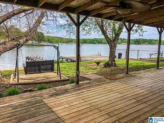 Exquisitely maintained 3 BR/ 2 BA manufactured home is a hidden jewel on beautiful Lay Lake. Split bedroom floor plan & open concept living spaces, makes this home easy to entertain family & friends or just to enjoy a lazy day for yourself at the lake. Kitchen w/breakfast area overlooking the family room w/large picture windows w/an unobstructed view of the lake and your private pier. Home Office/Gym/Study w/views of the lake. Large master suite w/walk-in closet. Large covered deck overlooks the lake and shaded backyard w/small private beach for the kiddos. Other features: wood/vinyl floors throughout main living areas, Over 1,400 sqft of living space, two storage sheds are included. Home on leased lot $3,400 a year.
