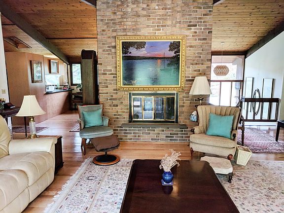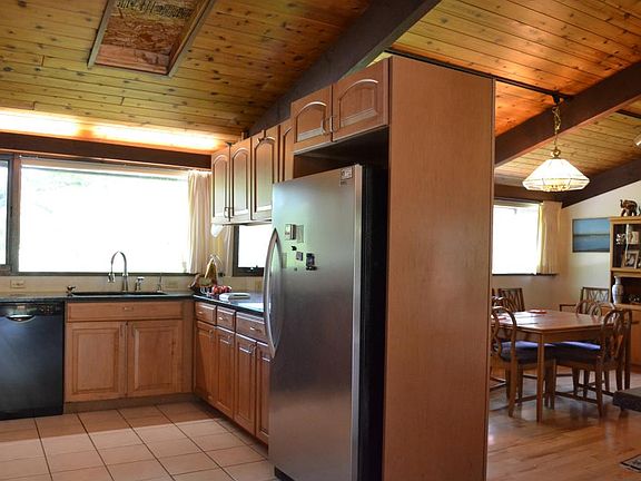 Deck style home built by Frank Hanshaw on a lush and private fenced yard. This 4/5 bedroom home has cathedral ceilings, natural wood accents, maple floors, skylights, huge home office suite with private bath and add'l bedroom or conference room. Beautiful two story brick fireplace in both family room and great room. Main level master suite with large dressing area. Convenient location, walk to restaurants and coffee shops. Solar panels on roof over garage/office. On public bus line.