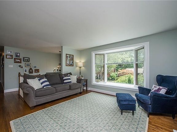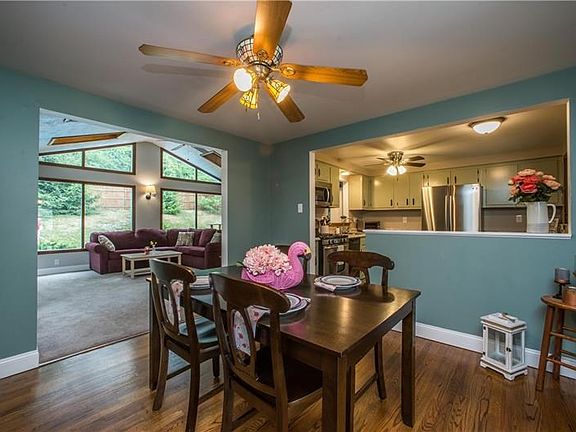 What sets this home apart is the amazing 1st floor great room overlooking a beautiful backyard oasis! Wall of windows and large skylights flood this spacious room with natural light. You'll love this extra living space - a rare find in Scott Twp! Beautifully updated kitchen has bird's eye view of family room and features stainless steel appliances, new counters, charming cabinets and updated layout. Gorgeous large front bay window and recently refinished hardwood floors in the living room and formal dining room. Fresh paint throughout. A few steps away you will find the owner's suite where beautiful hardwood floors continue. Ensuite pairs gorgeous retro tile with new vanity & toilet. Two additional bedroom plus another full bath. Finished lower level, perfect for family room or guest suite, has stunning brick fireplace and convenient full bath. Enjoy summer on the covered back porch and magnificent inground pool with gorgeous landscaping lights. New roof, driveway & retaining wall.