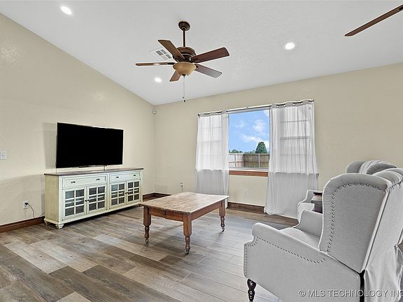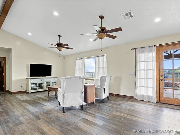 This 3-bedroom, 2-bath home is situated on 2.6 acres in the Lone Grove School District and offers an open-concept layout designed for comfortable living. The kitchen features stainless steel appliances, ample cabinet space, and an island bar for additional seating, flowing seamlessly into the living area. Recent updates include luxury wood flooring throughout most of the home, new baseboards, and a roof replaced in 2018, while tile remains in the bathrooms for durability. A large backyard with privacy fencing is ideal for children, pets, or even adding a pool, and a storm cellar provides peace of mind. Additional highlights include a double-car garage and move-in-ready condition, making this property an excellent choice for those seeking both space and convenience.