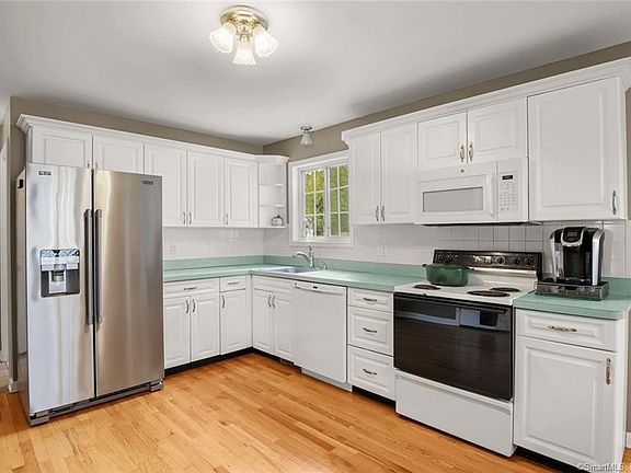 Located on a quiet road with convenient shopping just around the corner is this move in condition colonial. The comfortable and spacious formal living room offers hardwood floors the open concept eat in kitchen offers the space needed for today's more casual entertaining lifestyle and flows to the fabulous family room with vaulted ceiling and skylights, offering the perfect amount of space for everyone first level is complete with renovated half bath and access to 1 car attached garage the second level welcomes you to the Primary Suite offering vaulted ceiling, walk in closet and your very own primary full bath two additional generous sized bedrooms offer huge double closets this bright and cheerful home with it's very own front porch sits on a .21 lot that abuts open space there is a bonus finished playroom/home office in lower level with sliders to a mahogany deck overlooking level rear yard. Peonies, lilacs and hydrangea offer a beautiful landscape bursting with color plenty of room and sunshine for a vegetable garden hardwood floors throughout (except Family room) and zoned gas heat and central air conditioning make this home a treasure for it's new owner. Welcome to Fairfield.