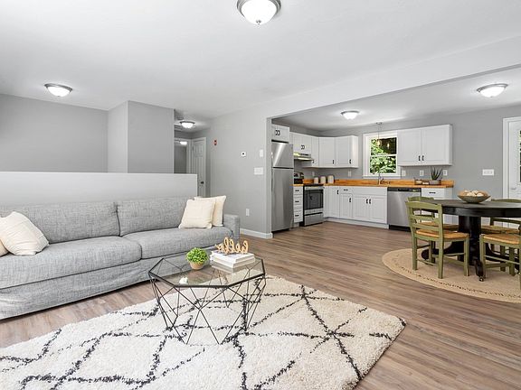 Beautifully updated 4 bedroom Raised Ranch is quaintly nestled on 1.3 acres in Northfield, NH. Conveniently commutable to Concord, Manchester, Boston and all the popular Seacoast Beaches, this charming home is sure to impress the savvy buyer with its stylishly remodeled kitchen featuring new stainless steel appliances and butcher block countertops, recently updated bathroom, durable manufactured flooring and new carpets, modern paint colors as well as new systems. Well proportioned bedrooms, each generous in size and storage, generous living areas, plenty of natural light in addition to a private and level back yard. This enchanting property is close to Tilton and Lake Winnipesaukee, so easy access to restaurants, shopping, boating, golfing, hiking, skiing and all that the "The Lakes Region" has to offer. Broker interest.