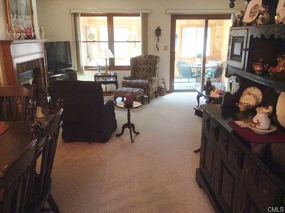 Great Value! Features include a beautiful 3-Season porch with ceiling fan and vaulted ceiling, a living room with gas fireplace, dining room, EIK with hardwood floor, master bedroom with double closets and a finished basement (not included in Sq. Ft.) Newer Furnace and A/C. Lovely view of pond and fountain from EIK. Quarterly district tax of $583.11 is deductible. Second bedroom has no closet. Owner wants offers!