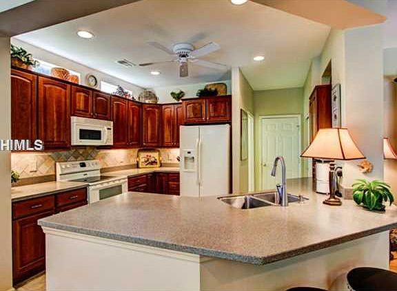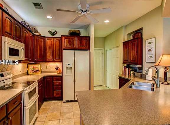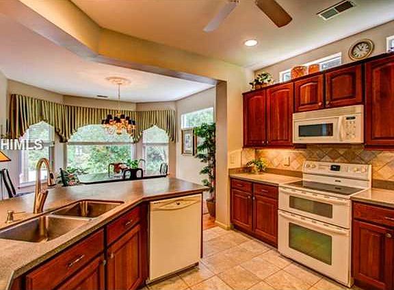 Impeccable Hamilton/Jefferson within walking distance to Okatie Creek Clubhouse, Town Square, Lake Somerset. Great Room & Den w/built-ins; dining area w/bay window; laminate wood floors; kitchen w/dbl. oven, silestone countertops, tile backsplash, low breakfast bar, pull-outs, under cabinet lighting, tile floors; Carolina Rm. w/slider doors to patio; Laundry Room with w/d, cabinets; Master suite w/bay window, walk-in shower, elevated vanity; garage w/lots of storage cabinets, epoxy floor, side door & window. Relax in your backyard on the extended patio & enjoy the garden. Newer roof, HVAC. (ZT)