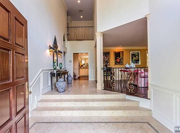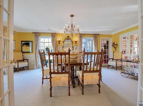 Designer's home sits high on Tenafly's prestigious East Hill. Grand 2-Story foyer welcomes you to this sunny, well-maintained home. Main floor boasts gorgeous formal living room w/ wood burning fireplace, bright dining room w/ French doors, chef's custom kitchen w/ large island, Subzero appliances, built in Miele coffee machine, custom banquette and French doors to back patio, and handsome library/den. Up one level, 3 bedrooms w/ Juliette balconies. Vaulted master bedroom suite w/ tremendous sitting room w/ gas fireplace, walk in closets, dressing room w/ built in vanity, and en suite w/ separate toilet. Lower level-w/ sunlit Billiard Room w/ French doors to outdoor patio, powder room, and bedroom suite. Basement w/ full kitchen, bedroom, full bath and storage. Stunning outdoor space for entertaining w/ gunite pool. Meticulously maintained landscaping surrounds the home, circular drive & 4 car garage
