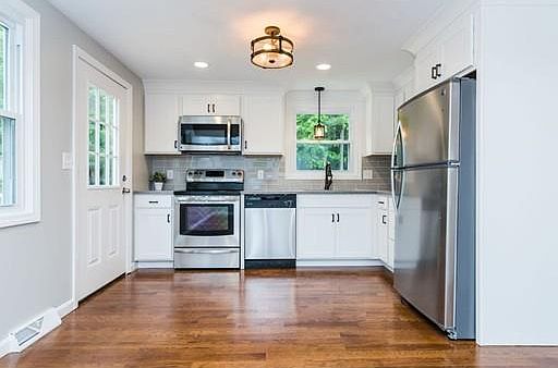 Looking for a home with nothing to do but move in? 23 Sumac Drive is a charming Gambrel that has just undergone a major renovation! This property boasts an open concept layout on the first level with front to back living room, brand new kitchen offering white soft close cabinetry, stainless steel appliances and warm gray tile backsplash. Stunning first floor bathroom with double vanity and tiled shower. Gleaming hardwood floors, modern lighting fixtures and oil rubbed bronze hardware accent the main level. The upper level offers three sizable bedrooms with a renovated full bath, new carpets, doors, and lighting. There is a brand new roof, vinyl siding, forced air heating and cooling systems and a new driveway! Enjoy the oversized deck off the kitchen or the fire and horseshoe pits in the large level backyard! With a new high school, easy access to shopping, numerous local dining options and major roadways this property awaits its new owner! OPEN HOUSES CANCELLED. OFFER ACCEPTED.