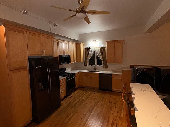 This unique space features hardwood floors, gorgeous kitchen with Maple cabinets and slow close doors and drawers, quartz countertops, black, stainless steel appliances, including dishwasher and in unit high end front load washer and dryer.