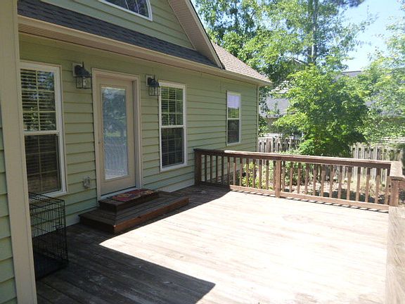 This home has that cottage look that is so popular today. Large columns on the front porch, stacked stone accents and a well-landscaped yard with large shade trees and irrigation system give this house great curb appeal. The appeal continues inside with the high ceiling in the den, large crown mouldings and lots of windows. The den and dining room are open and have great views of the fenced back yard and deck. The kitchen features an abundance of custom cabinets, stainless steel appliances (convection oven) and an informal dining area with built-in window seat. The master suite has a trey ceiling and luxurious master bathroom with a separate tub and shower, double vanity and large walk-in closet. Both guest bedrooms are spacious and have good closet storage. There is also a bonus room upstairs that is heated and cooled with a separate air conditioner. This house really has it all!