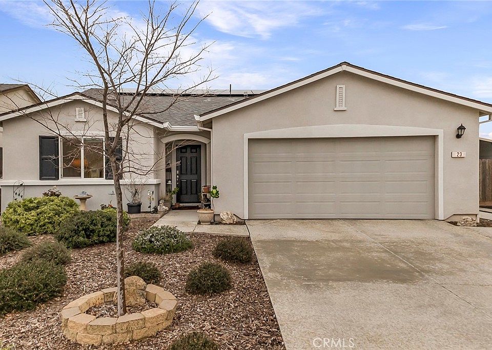 Welcome to 23 Susan Court! Located in a newer subdivision next to the Table Mountain Golf Course, Thermolito Afterbay, beautiful views of Table Mountain, a five-minute drive to Oroville, and a little over 20-minute drive to Chico, this is a home you are going to want to see! This is a larger floorplan for this development and boasts 4 bedrooms, 2 bathrooms, and almost 1800 ft.². As you enter, you’ll find a beautiful kitchen with light and bright cabinets, a large island with granite countertops, ample storage, pots and pan pull-outs which makes storage a breeze, newer appliances, and an open-concept living area making this a fantastic place to entertain your friends and family. The primary suite with en-suite is a great place to relax after a long day, with a spacious walk-in shower, water closet, and large walk-in closet. Head outside and you’ll find a large blank canvas backyard ready for you to put your personal touch on. Other features include; leased Solar, an instant water heater, drought-resistant landscaping, an oversized patio in the backyard perfect for creating a BBQ or entertaining space, an oversized driveway with RV Parking, and a carport with enough clearance for a small RV or boat. This is one you don’t want to miss! Make an appointment to view this great home today!