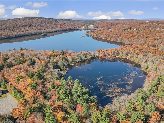 LAKEFRONT! Here is a unique opportunity to own your very own log cabin situated on the most picturesque lakefront setting on a 3/4 acre lot. If you ever feel like you want to escape from it all, this is the place for you. Enjoy the log cabin with covered deck overlooking the woods & the private lake known as Round Pond or take advantage of the nice sized lot & build new! A sand-mound septic system suitable for a 3 bedroom home is already in place. Kidder Township welcomes short-term rentals & what a special place to offer to rental guests! You'll find Big Boulder Ski Resort plus Lake Harmony's shops & restaurants are just down the road. Come fall in love with this one-of-a-kind property!