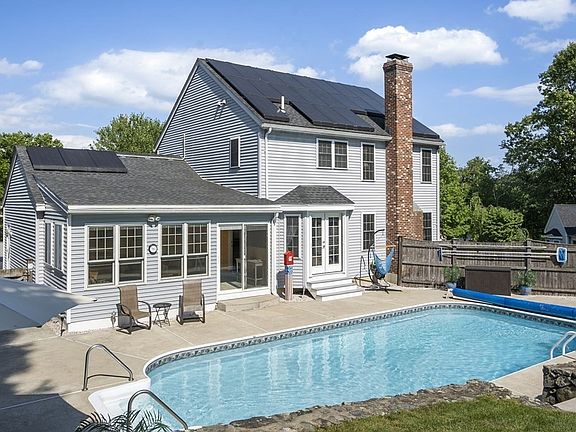 This true gem of a home sits tucked away at the end of a cul de sac yet still close to all of Maynard's wonderful amenities. Everything in this home has been updated and will exceed the most discerning buyers expectations! Chef's kitchen with all the bells and whistles to cook that gourmet meal. Updated bathrooms-soaking tub and large walk in shower with radiant heated floors in the primary bath! Newer roof (2016) and newer Buderus furnace. Energy costs are extremely low due to solar panels that are owned, a pellet stove controlled via thermostat, and a wood stove in the family room. Looking for an extra bedroom? There are multiple options to meet that need. And just wait until you step outside- you can cancel that last summer getaway because you won’t want to leave your own backyard oasis with a salt water pool (new liner, 2018) and pump (2017), mature gardens with hummingbirds fluttering about and plenty of space to grill, play, and entertain! Welcome Home!