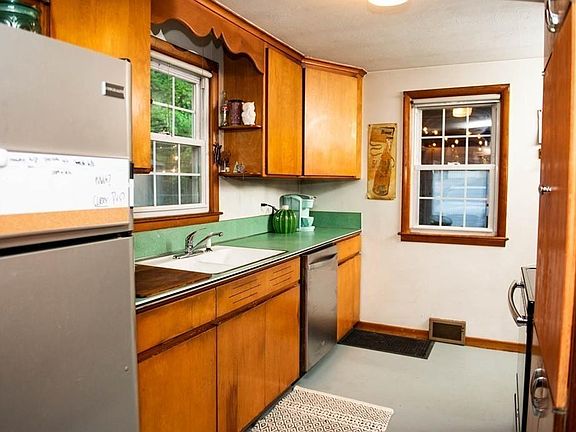 Adorable & Chic 1950's ranch turned into a mid-century dream! 400 sq ft 3 season Porch/Patio was once the garage and is ready to be finished as an addition or turned back into the garage. Clean basement for storage or for a den/office. Fenced in private yard featuring a brand new patio complete with string lights and fire pit. Ready for backyard BBQs Yard abuts the openness of the Buttery Brook woods. Brand new appliances in the stylish vintage kitchen. All new modern and bright bathroom featuring bespoke vanity, his and hers sinks, extra deep tub for relaxation and subway tile surround. 3 bedrooms with harwood floors and new light fixtures . Open and bright living room with a focus on a custom reclaimed barn wood fireplace wall. Great entertaining space.Tucked away setting but with ease of access to all necessities and commutes.