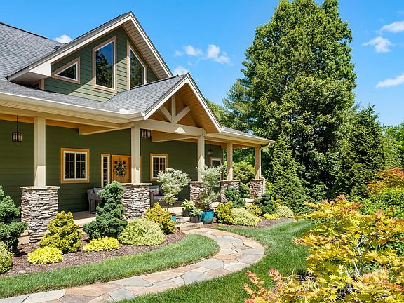 Have it all - year-round mountain views, a level lot (and driveway!), open, light-filled living spaces, beautiful, established landscaping, room to grow and breathe, all within 20 minutes of downtown Asheville. Centered on a stunning wall of windows, the flowing floor plan of the main level welcomes light all day and is perfect for entertaining large parties or intimate friends. The main floor primary suite is comfortable and private and the west-facing screened porch off the gourmet kitchen is a perfect place to relax and watch the sunset. With two large bedrooms upstairs and another down, there is plenty of room for family or guests. The walk-out lower level also creates flexible spaces for recreation, work, fitness or all of the above. Outside, enjoy custom stone work and established landscaping within the fenced yard that has more than enough space to run and play. Large 2-car garage provides space for storage AND tools. Low annual HOA fees include a community pool. Welcome home.