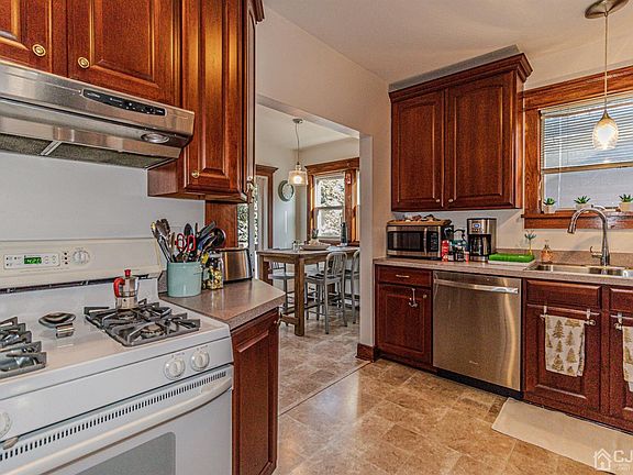 Wonderfully charming, sun filled, 2 story home in move in condition! Enter into the enclosed porch great for relaxing. Notice the updated windows throughout the home. Continue into the living room with wood burning fireplace and notice the new hardwood floors throughout the home. Formal dining room, sunroom, eat in kitchen with new fridge and dishwasher. New sliding doors to backyard with patio. Also 2 bedrooms and main bath on 1st floor. 2nd level features 2 add'l bedrooms and 2nd full bath. Nice spacious attic for storage, full basement with laundry area. 2 zone heating, recessed lighting, stain glass inserts and freshly painted on both levels. 1 car detached garage. So convenient to train, downtown and YMCA!