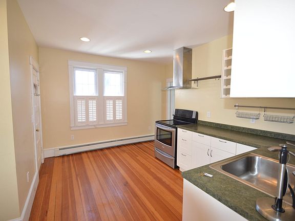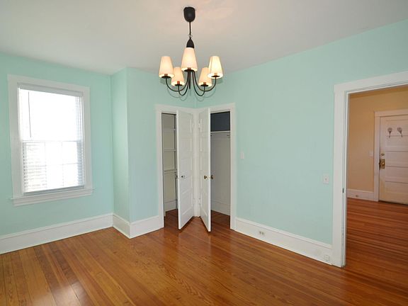 Sunny 1st floor two bedroom apartment in desirable North Newport neighborhood. Close proximity to the Naval Base and Downtown Newport. Enter into a large living room, with space for a dining set. Large bedroom off the living room with wood double doors. Head into an updated kitchen with stainless steel appliances. Back door off the kitchen out to the fenced in yard. Second bedroom off the kitchen. Hardwood flooring though-out. Shared laundry in basement. Sorry no pets will be considered.