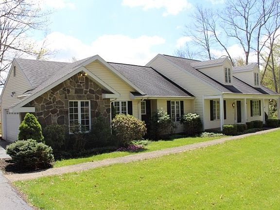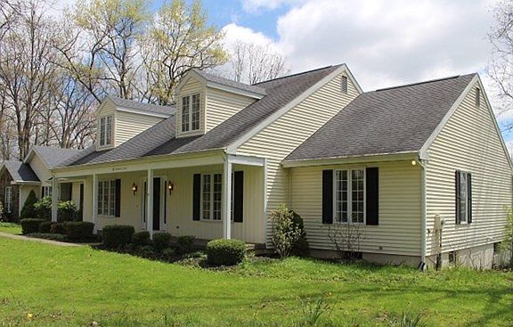 Executive Cape on a beautiful lot in ever-popular Woodland Park. Cathedral ceilings, large fireplace and a huge wall of windows and doors leading out to the expansive deck, the view and the large sunny yard, surrounded by trees. The kitchen shows off granite countertops along with a desk area, with a pantry and Blackboard chalk wall. The laundry and mud room are also right off the kitchen. The owner's suite looks out onto the yard and sports cathedral ceiling with beams for ambiance, 2 large walk-in closets, and spa-like bath.Upstairs looks out over the great room and holds 2 bedrooms,full ba.