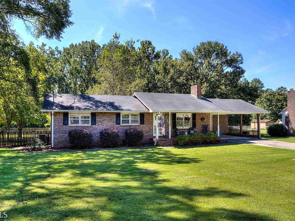 3 Bed/2 Bath four sided brick ranch on a large corner lot located inside City Limits and within walking distance to Dellinger Park. Home features brick fireplace, laminated hardwood floors, tile bathrooms, tile backsplash in kitchen, large laundry room with ample storage, oversized kitchen with cozy breakfast area and view of the private backyard. Property has large workshop/outbuilding, concrete pad for parking and mature trees to create a great space for entertaining.