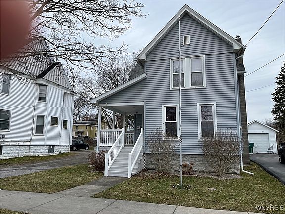 This delightful 3-bedroom, 1-bath city home is conveniently located near restaurants, shopping, and all amenities. The first floor offers a cozy living room, formal dining room, eat-in kitchen with appliances, and a laundry area. A small room off the kitchen has a toilet and a large built-in cabinet, making it convenient since the full bath is located on the second floor. This room could easily be converted into a half-bath with the addition of a sink/vanity. The primary bedroom features a large closet, plus additional rooms that could serve as a nursery or storage area. Enjoy maintenance-free front and side porches, vinyl windows, and a 1-car detached garage with electric (painted in 2024). A patio and partially fenced yard round out this listing. The home is being sold AS IS.