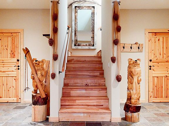 This unique single-family home offering 5 bedrooms, 4.5 bathroom and extensive family living space is available for 30 day or more rentals. The 4025 sq ft custom built home is situated close to the corner of Twin Lakes Drive and Canyon Blvd, with views of the Gondola passing by and quaint forest setting. Walking distance to the Village offering access to shopping, restaurants and all of the fun Summer festivals, this home has convenient access to it all. In the Summer the bike shuttle loop is just down Canyon Blvd and you can easily hop on and off of the lakes basin pathways. For the Winter you are not far from the Gondola access taking you right to Canyon Lodge. The home itself offers 3 levels of extensive living and family space, laundry, a wrap around deck, 4-car garage and pool room! After you enter the home with the double entrance with garages on each side, you are welcomed by a large entry mud room with ample storage. The home is flanked by the grand central staircase and on the middle level you will be greeted with a large entertainment room with large flatscreen TV, full size pool table. A spacious living area is centered around the gas fireplace, with vaulted ceilings and exposed wood beams throughout. The kitchen and dining space on the other side of the central staircase offers large dining area for at least 8 guests, plus the open plan kitchen offers more social space with additional bar seating for 4. Cook like a pro in the beautiful gourmet kitchen with large island, professional Kitchen Aid appliances and gas range and everything you will need to prepare meals for the whole family, or let a chef do it for you! With two bedrooms on this level of the home, the first featuring a California King size bed with home office desk space and large flatscreen TV. The second bedroom features bunk beds with Full on bottom, twin on top, flatscreen TV and gaming console, the perfect hideway for the kiddos. Both bedrooms have access to a shared hall bath with tub/shower combo. A powder room completes this level. On the top level offers a second living or TV area with comfortable sectional couch and large flastcreen TV. The washer/dryer is also located in this space. Two bedrooms are located on one side, the first offers a King bed with home office desk space and large flatscreen TV and forest views to the rear of the property. The fourth bedroom features a California King bed where you can watch the Gondola go by from your bed, a flastcreen TV and home office desk space. These two rooms are adjoined by a jack and jill bathroom with dual sinks and tub/shower combo. On the other side of the central staircase is the master suite. The master features a California King bed, seating area, and home office desk space with large flatscreen TV. The en-suite bathroom offers a double vanity, large soaking jet tub, walk-in shower enclosure and large walk-in closet. The home comes with luxurious bedding, and is stocked with everything the family would need, including games. This is a true Mountain getaway home away from home available for long extended stays, a unique home and with the convenience of everything very close to your doorstep. This home sleeps a maximum of 12 and is available for month long rentals. To inquire about pricing and availability please contact the Mammoth Reservations office. Summer/Fall rates vary from $12,000-$15,000/month, Winter Season rates vary from $20,000-$30,000. Monthly rate includes WIFI, cable TV, Snow Removal. Additional utilities that will be expensed include Gas, Electric & Water. A cleaning fee and a refundable security deposit will be assessed. The home is non-smoking, pets only on request/approval only. The home has 4 parking spots available plus 2 driveway.