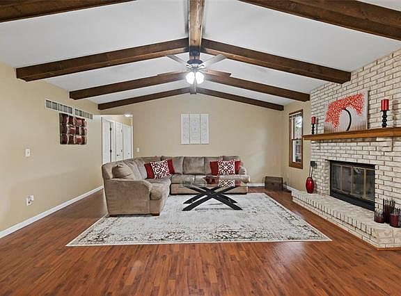 NEW PRICE! Welcome home to this charming ranch in the heart of St. Peters! Inside, you'll be greeted by a spacious entry that leads in to a vaulted great room complete with a wood-burning masonry fireplace. This open concept space adjoins a dining area and updated kitchen with newer stainless appliances (fridge stays) and sprawling counter space! A cozy 4-seasons room off the kitchen is a perfect spot to relax with a view of the private landscaped back yard. Down the hall you'll find a nice-sized master suite with a newly updated bathroom, two additional bedrooms, and another full bath. The finished basement is perfect for entertaining and boasts a huge rec area and two additional rooms that would work perfectly as office space, sleeping areas, etc. Recent upgrades include all brand new carpeting, updates to the kitchen and baths, newer water heater, tons of landscaping, and a freshly painted exterior! This conveniently located property won't last long!