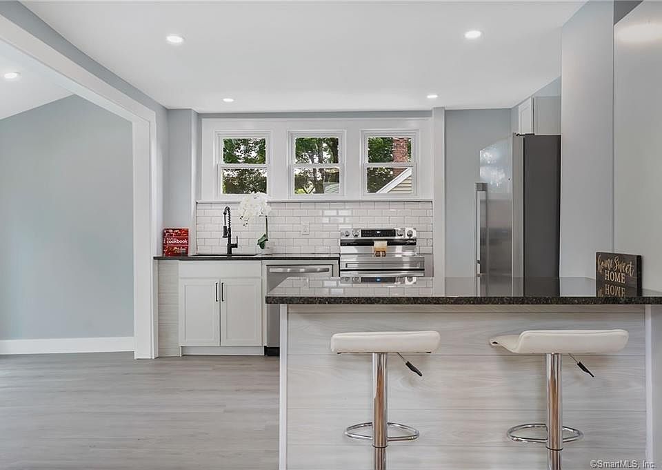 This completely remodeled 3 bedroom 1 bathroom colonial is ready for you! First floor boasts spacious living room, dining room and updated kitchen with new cabinets, granite countertops, and stainless steel appliances. Vaulted eat-in kitchen area with sliding doors leading out to the back deck. Gorgeous refinished hardwood floors throughout. Second floor offers 3 bedrooms and a custom tiled full bathroom with modern vanity. Oversized driveway to accommodate many cars in addition to a detached 2 garage. Only 1 mile from Hubbard Park, close to major highways, the mall and 30 mins from Hartford & New Haven.