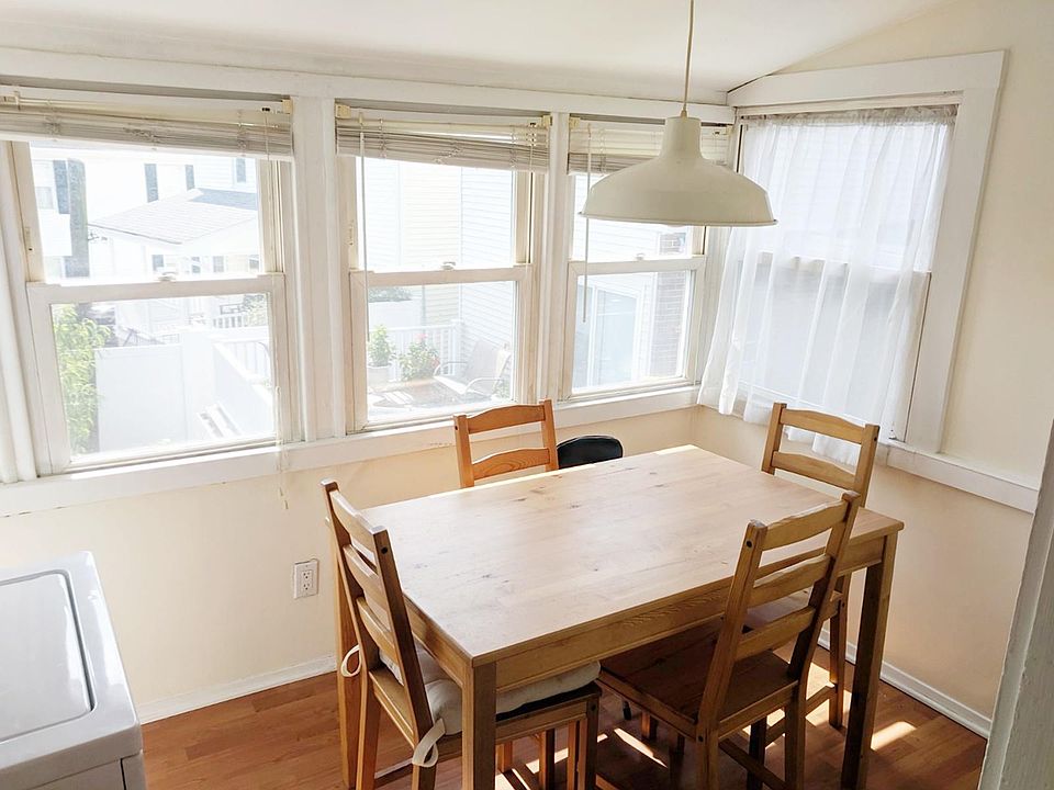 Second floor Gem. HARDWOOD FLOORS. Driveway parking. STUNNING SUN PORCH Dishwasher in Kitchen PORCH As is, two Air-Conditioning Units. FREE HEAT Walk to Coffee Shop. Half mile to train. WASHER & DRYER IN UNIT! Small pet considered. Tenant pays $28 application & half months rent fee.
