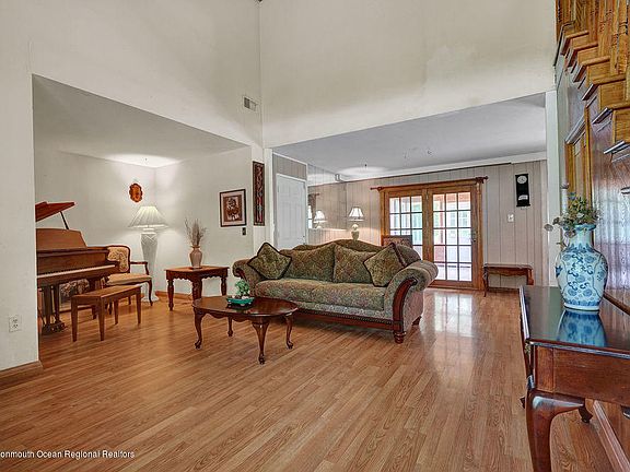 This is your Opportunity to own a Brick Front Colonial/Contemporary located in Manalapan Twp! This home features a two story Living Room with Vaulted Ceiling, 4/5 Bedrooms, 2 full Baths, an Eat In Kitchen, a Florida Room and Garage. First floor has two BR's but are being used as a den & office. Freshly Painted w/Wainscoting, molding. The Second floor features 3BR's, All new Hardwood Flooring, Bathroom redone in 2017 w/clear glass shower door enclosure and ceramic tile detail & cherry vanity! The home also has an alarm system, newer HWH in 2017, Newly Paved Driveway in 2019 and a beautiful sprawling backyard! Close to Shopping and Major Highways!